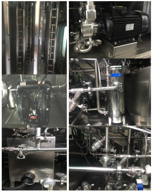 6.The remaining detergent in the pump and pipes are blown off by compressed air and flow back to cleaning tank. This function saves detergent up to 50%.