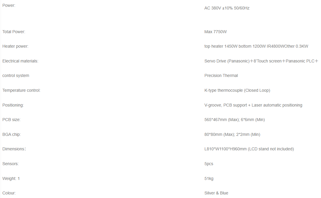 ●Large size IR heater, high-performance heat pipes, and the micro-crystal plate so that preheat PCB