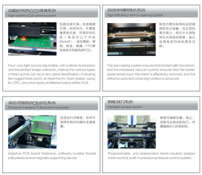 8. The stencil and the PCB are aligned, the Z-frame will move up, and the PCB touches the lower part of the stencil