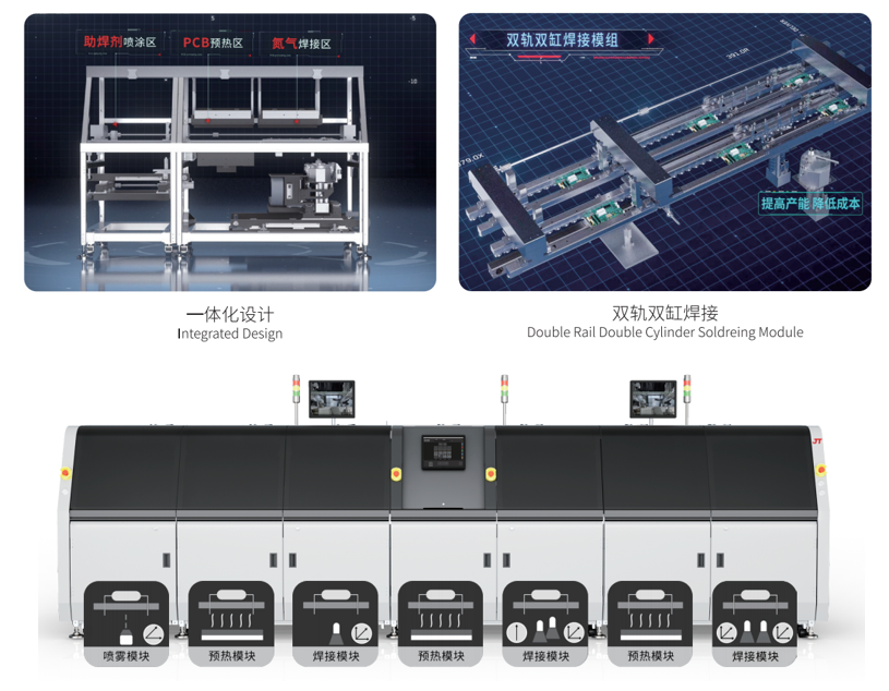 · Fluxer Spray + Preheating+Soldering module, integrated design, flexible configuration andfree expansion.