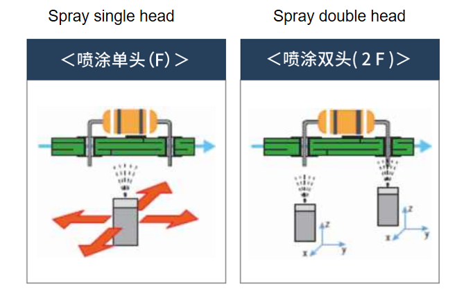 | 助焊剂喷头(Flux nozzle) | 电子脉冲喷枪Electronic pulse spray gun/雾化喷枪Atomizing spray gun(选配option) | ||