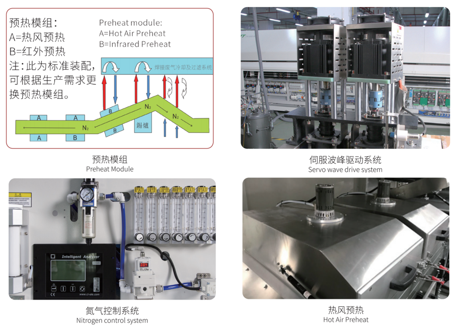 ·The tunnel-based entire nitrogen wave soldering can reduce solder defect and improve