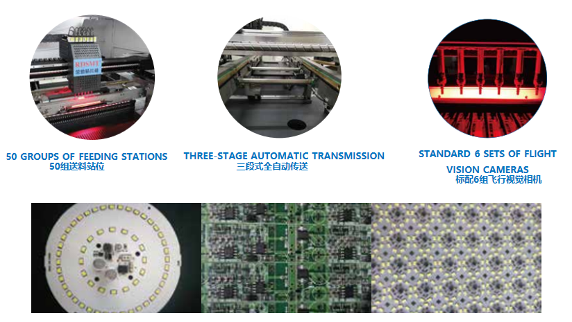 3:Six groups of high-speed mounting heads rotate independently, and the mounting speed is not affected by the angle.