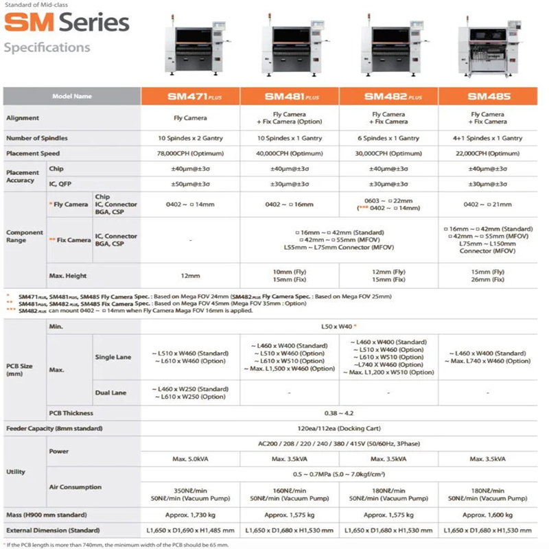 The Hanwha SM481 Plus is a high-performance pick-and-place machine designed for versatile and precise Surface Mount Technology (SMT) assembly. It is optimized for applications requiring a balance of speed, accuracy, and flexibility, making it suitable for a wide range of industries, including consumer electronics, automotive, and industrial manufacturing.
