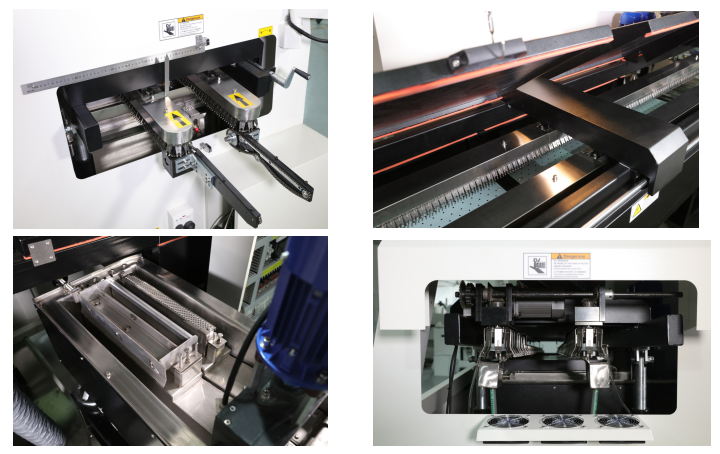 3.Flux sprays system using scanning spray nozzle, Japanese nozzles and rodless pneumatic cylinders and PLC control, accurate and reliable.